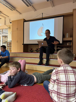 ,, Hétfő délután iskolánk 2.c osztályos tanulói különleges élményben részesültek az Országos Rajzfilmhét keretein belül: a városi Hamvas Béla Könyvtárban találkozhattak a Kuflik írójával, Dániel Andrással.