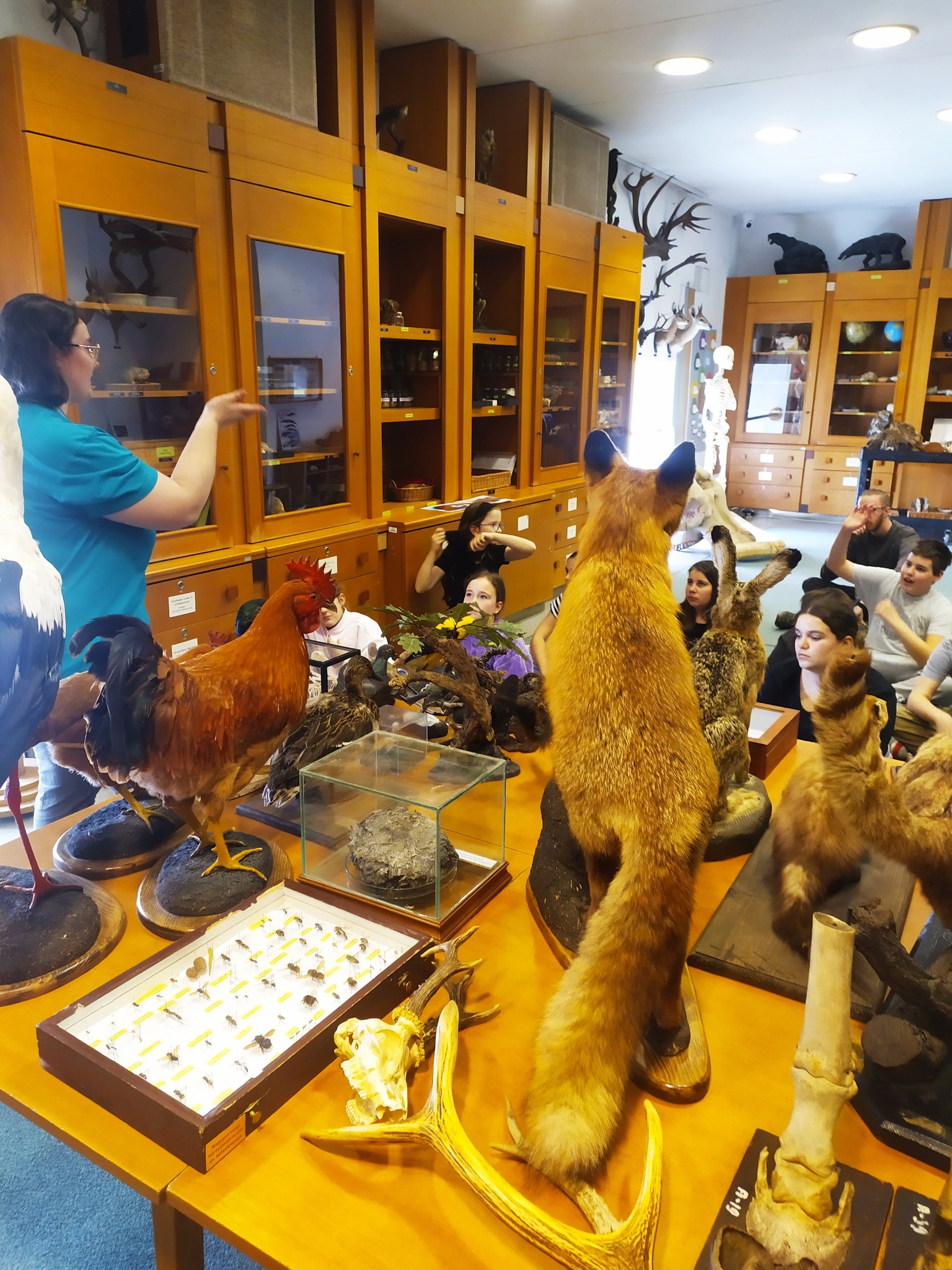 A felső emeleten a magyarországi élővilágot bemutató kiállításokon keresztül fedezhettük fel hazánk természeti értékeit, többek között a neandervölgyi ember leleteit és egy mamutvadászat jelenetét is.