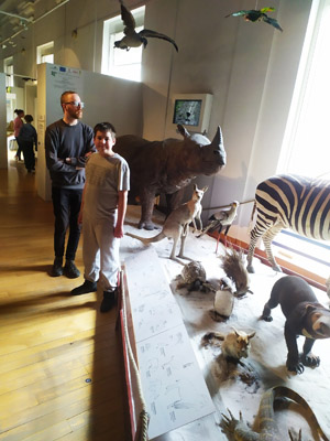 A főbejáratnál a Fogadótér kupolájában egy 20 méteres barázdás bálna felfüggesztett csontváza alatt léptünk be, majd Káli, az elefánt hatalmas csontváza nyűgözött le bennünket.