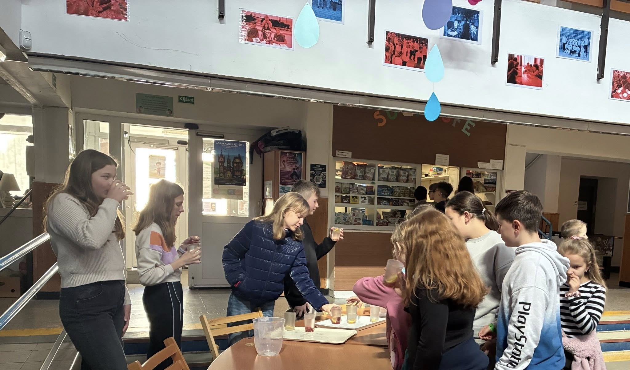 Hétfőn vízbár várta a gyerekeket az óraközi szünetekben. Minden reggel „vizes” klasszikus zenét hallgathattunk.